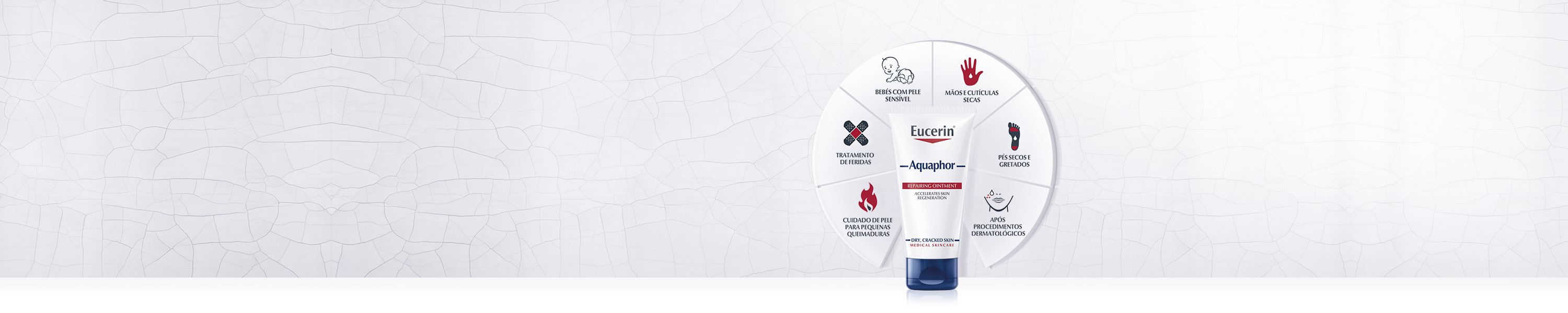 Eucerin Aquaphor Pomada Reparadora é benéfica numa série de problemas de pele seca. Pode aplicar seja em bebés com pele sensível, mãos e cutículas secas, pés secos e gretados, tratamento após procedimentos dermatológicos, cuidados de pequenas queimaduras e tratamento de feridas.