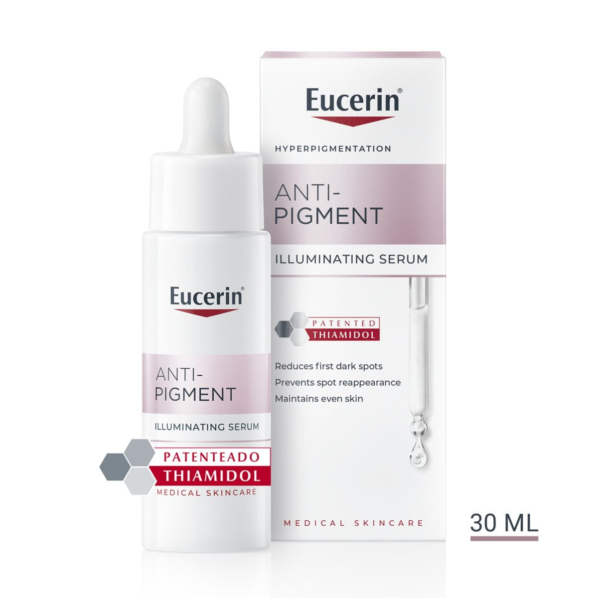 O Eucerin® Anti-Pigment Sérum Iluminador contém Ácido Hialurónico concentrado que melhora a hidratação da pele. É eficaz quando utilizado individualmente, como parte da sua rotina atual de cuidados da pele, ou juntamente com outros produtos da gama Eucerin® Anti-Pigment.