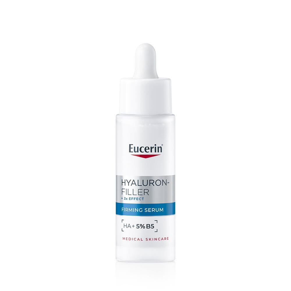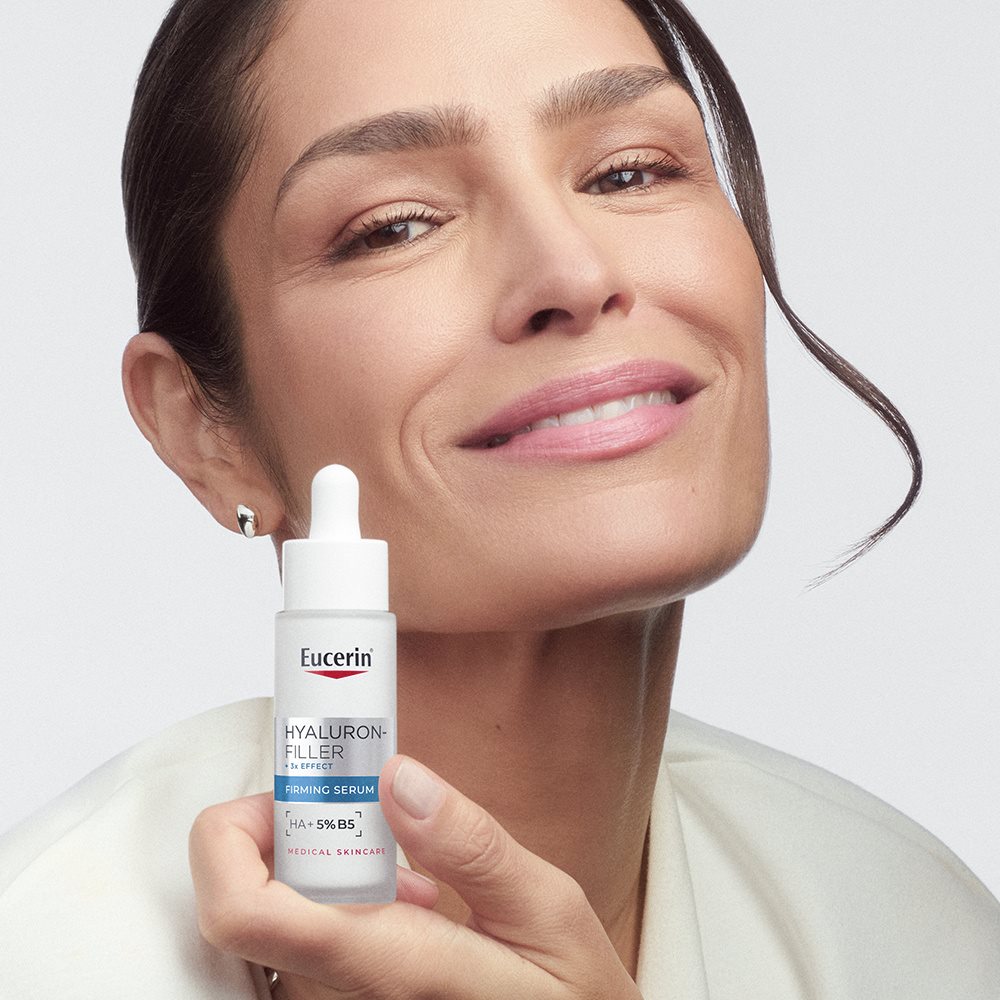 À medida que a pele envelhece, perde firmeza, hidratação e resistência, tornando as linhas finas e rugas mais visíveis. Um sérum refirmante avançado deve aumentar a firmeza da pele, apoiar a regeneração e reforçar a barreira cutânea. O sérum antienvelhecimento Eucerin Hyaluron-Filler + 3x Effect Efeito Lifting e Firmeza combina 5% de Provitamina B5 e Ácido Hialurónico de baixo peso molecular para fornecer hidratação duradoura, preencher visivelmente as rugas e fortalecer as defesas naturais da pele.