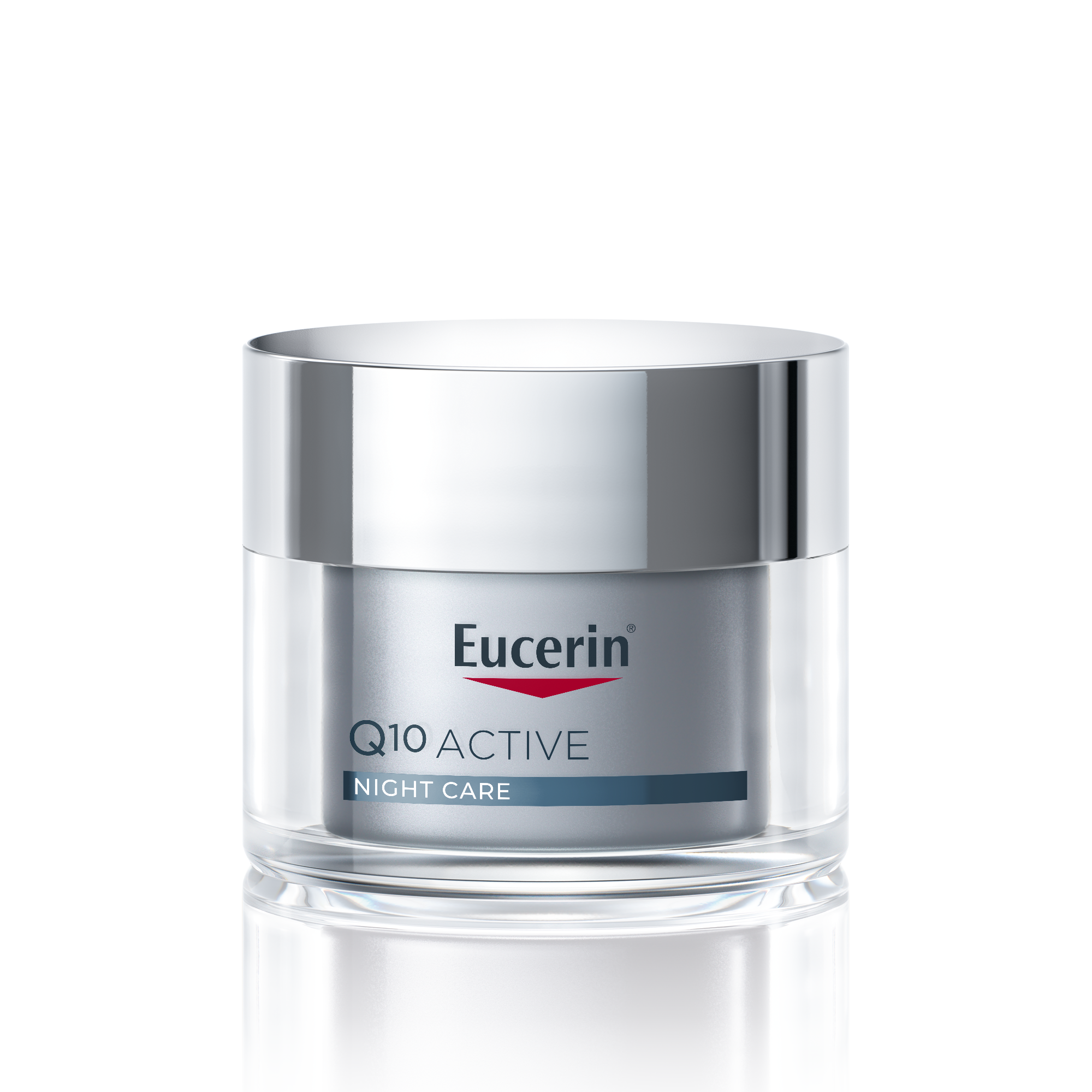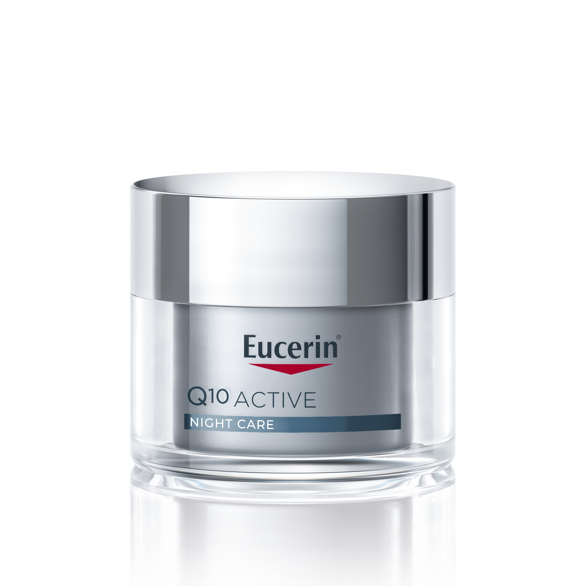Eucerin Q10 Active Noite é uma fórmula anti-rugas nutritiva para o envelhecimento da pele sensível.
